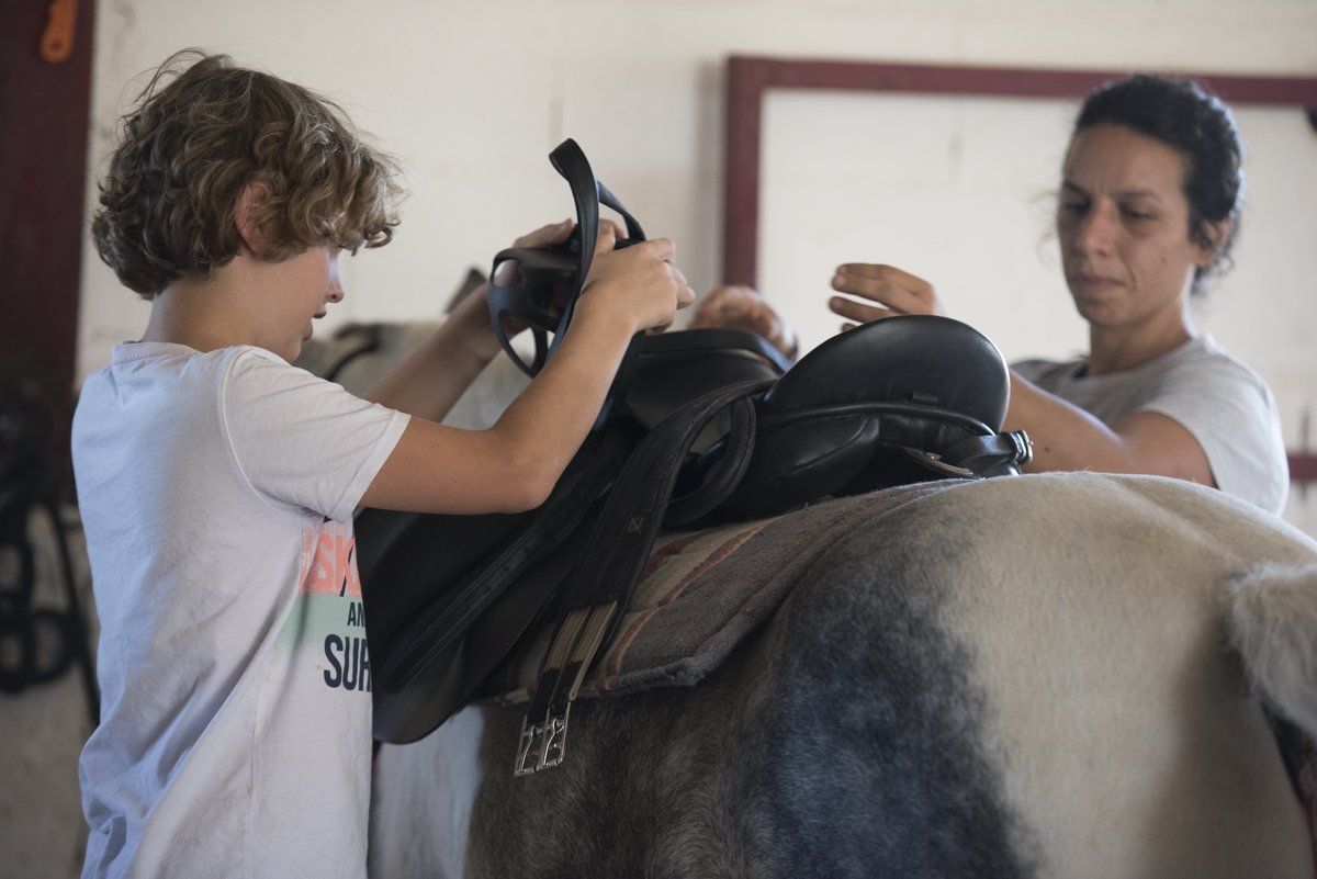 La sellerie de la ferme se compose de harnachements classiques d’instruction (selles anglaises, surfaix, filets etc.) mais également de matériel particulièrement conçu pour répondre aux spécificités des personnes en situation de handicap.