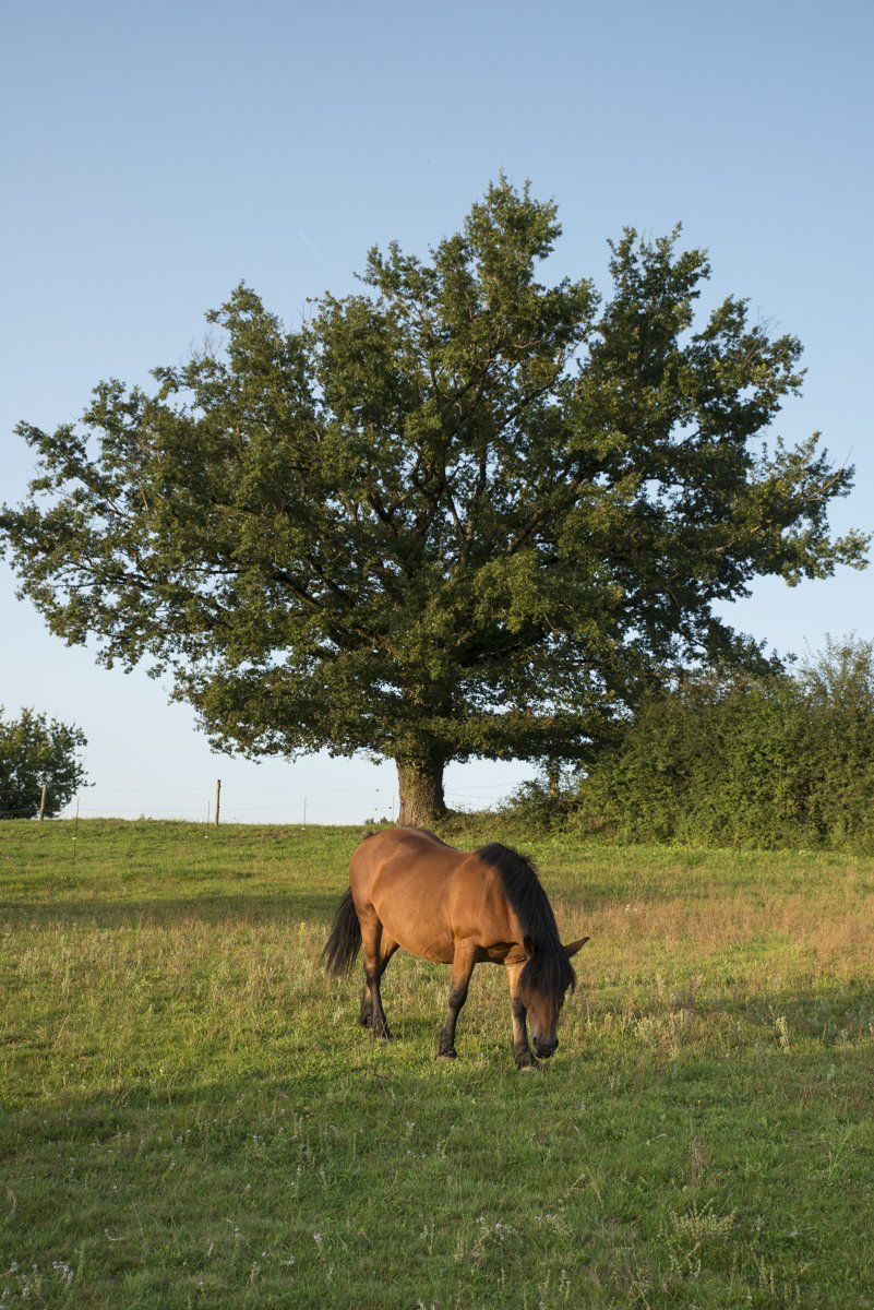 Ils profitent d’une alimentation naturelle à base d’herbe (au printemps/été) et de foin produit sur la ferme (en automne/hiver) ce qui permet de répondre au besoin primaire d’occuper leur système digestif durant 15 heures par jours environs.
